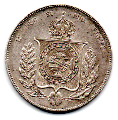 1865 - 1000 Réis - Prata .917 - Aprox. 12,75g - 30mm - Moeda Brasil Império