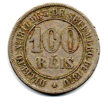 1871 - 100 Réis - Moeda Brasil Império