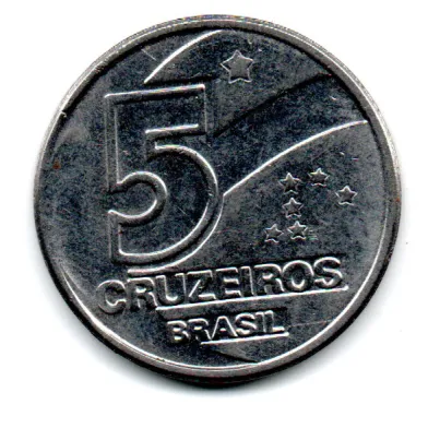 1990 - 5 Cruzeiros - ERRO: Cunho Quebrado - Moeda Brasil
