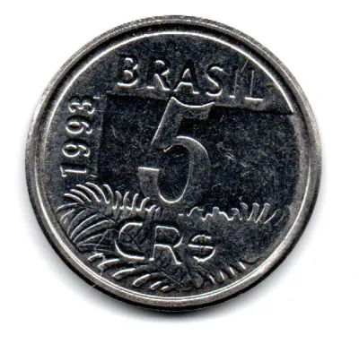 1993 - 5 Cruzeiros Reais - ERRO: Cunho Quebrado - Moeda Brasil