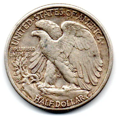 Estados Unidos - 1943D - 50 Cents - Half Dollar - Walking Liberty - Prata .900 - Aprox. 12.5g - 30,6mm